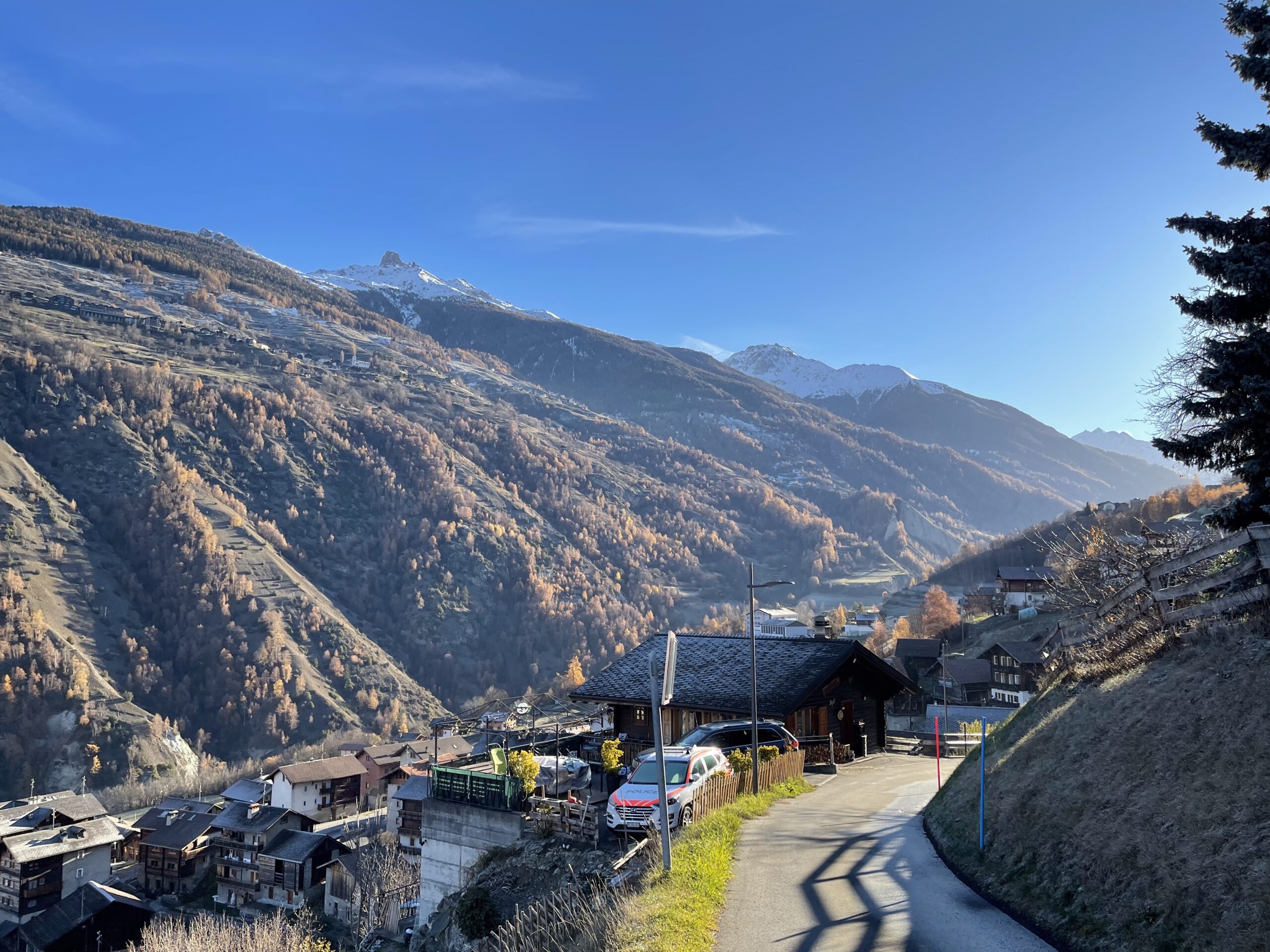 Perché sur les hauteurs d’Euseigne, il offre une belle vue dégagée sur le village, la vallée et les montagnes environnantes.